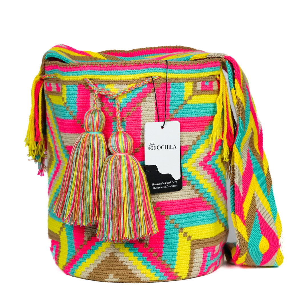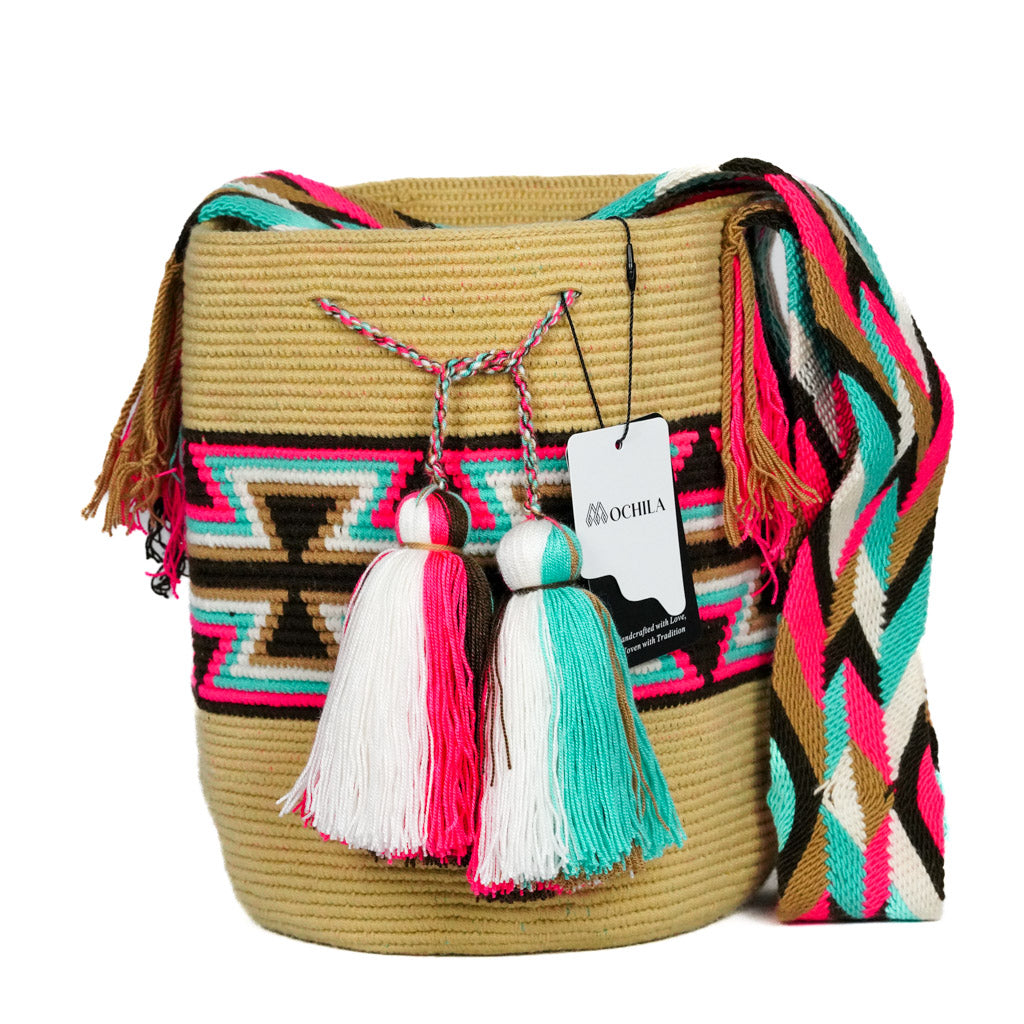 Welcome to our splendid assortment of Tote Bag Mochilas, a harmonious blend of elegance and tradition. ... Each handwoven treasure is crafted meticulously by proficient Wayuu artisans, reflecting the epitome of craftsmanship and the rich cultural heritage of Colombia. Elevate your fashion ensemble with a touch of Colombian artistry encapsulated in our Tote Bag Mochilas, and craft your distinctive style statement. Every Tote Bag Mochila in our collection is a petite marvel, symbolizing the intricate artistry and vibrant traditions of the Wayuu people. Immerse yourself in the exquisite details and bold colors that distinguish our Tote Bag Mochilas, and select the piece that resonates with your personal aesthetic, allowing you to express your unique fashion sense on every occasion.