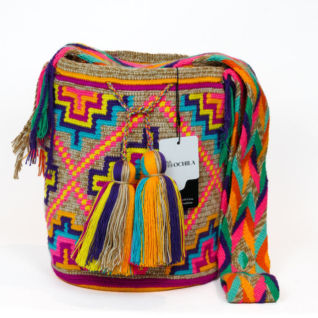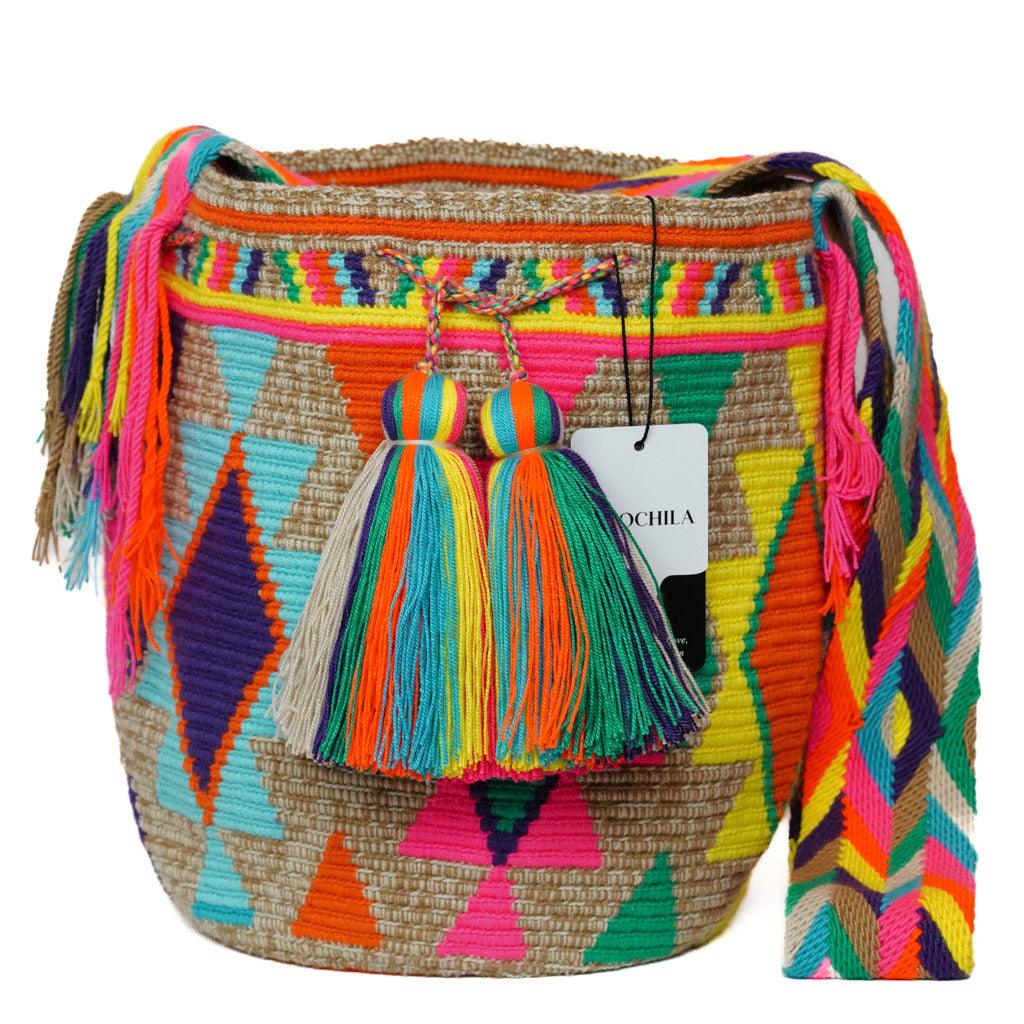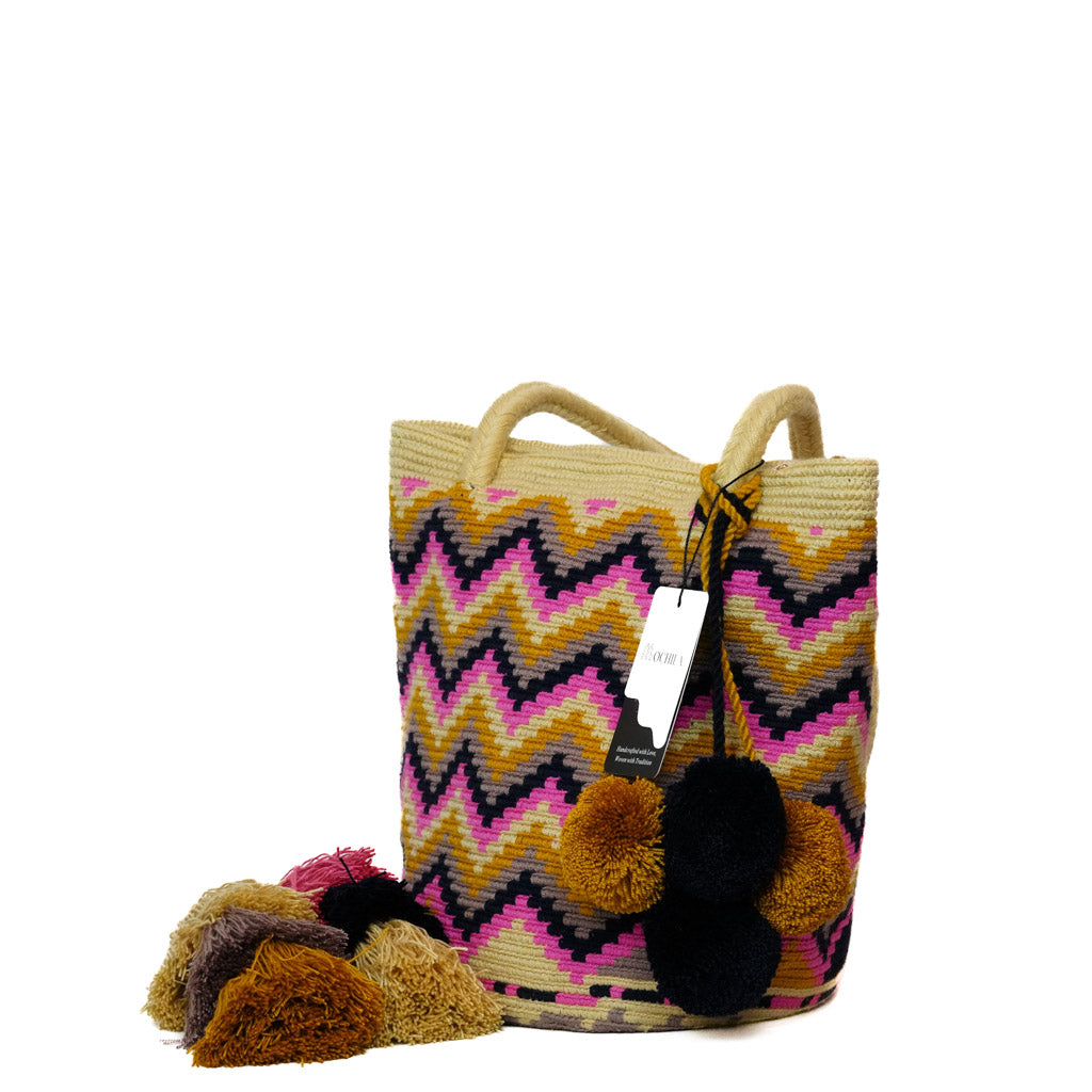 Welcome to our splendid assortment of Tote Bag Mochilas, a harmonious blend of elegance and tradition. ... Each handwoven treasure is crafted meticulously by proficient Wayuu artisans, reflecting the epitome of craftsmanship and the rich cultural heritage of Colombia. Elevate your fashion ensemble with a touch of Colombian artistry encapsulated in our Tote Bag Mochilas, and craft your distinctive style statement. Every Tote Bag Mochila in our collection is a petite marvel, symbolizing the intricate artistry and vibrant traditions of the Wayuu people. Immerse yourself in the exquisite details and bold colors that distinguish our Tote Bag Mochilas, and select the piece that resonates with your personal aesthetic, allowing you to express your unique fashion sense on every occasion.